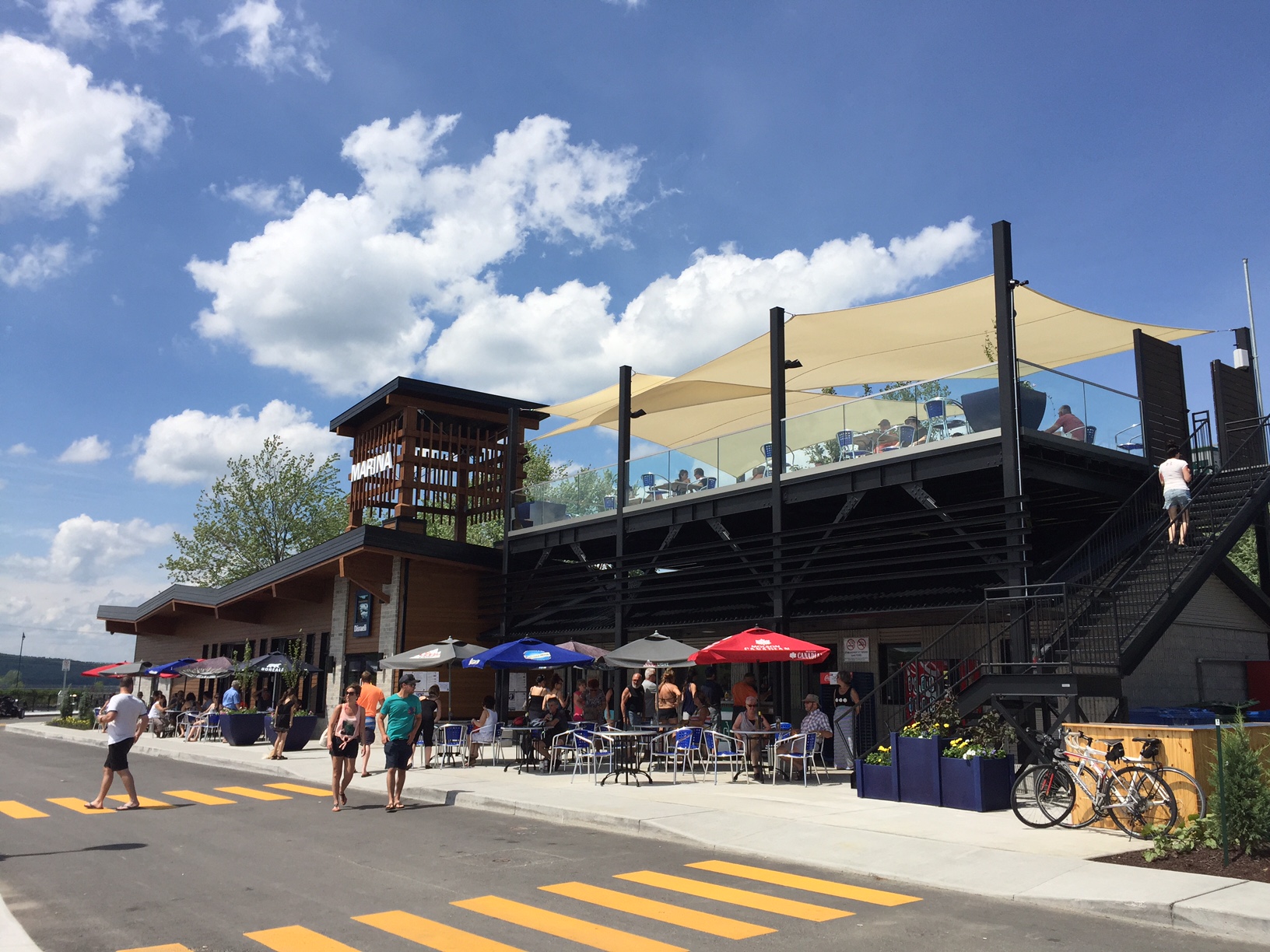 Notre mandat consistait à un réaménagement majeur de la Marina de Disraeli ainsi que les aires de repos adjacentes. Un agrandissement de 172 m2 annexé au restaurant existant de 80 0m2 a été réalisé. Un abri terrasse indépendant de 95 m2 faisait aussi parti du mandat.